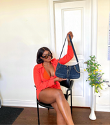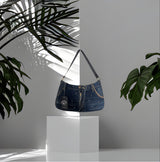 Expertly crafted for your next outing, the Jaiye bag is a one-of-a-kind travel bag. The sparkling dark denim and luxurious gold chain detail add elegance and durability. Stay organized with the convenient pocket and fully lined interior. Hand wash or clean with a damp cloth for easy maintenance.